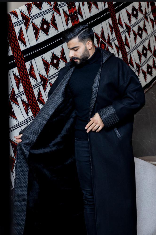 القماش الداخلي : فرو اسود ناعم على الجسم وما يطلع قماش